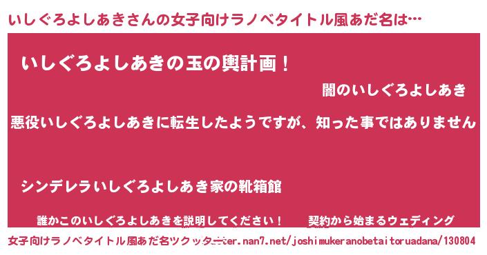 | 男性向けラノベタイトル風あだ名 | 『この素晴らしい世界にいしぐろよしあきを!』 |