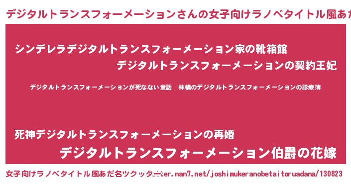 | 胡散臭い通販商品みたいなあだ名 | 『ハリウッド女優が絶賛した世界で10本だけ現存している希少なブランデー…その名も「デジタルトランスフォーメーション」』 |