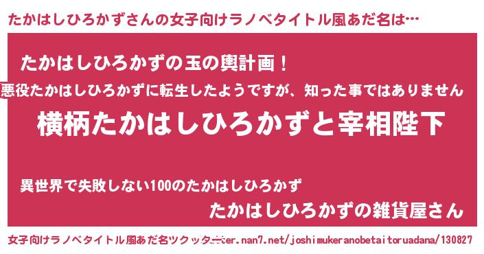 | 男性向けラノベタイトル風あだ名 | 『たかはしひろかずに滅ぼされるだけの簡単なお仕事です』 |