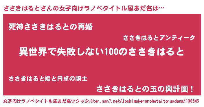 | 男性向けラノベタイトル風あだ名 | 『ささきはるとという概念が存在しない退屈な世界 』 |