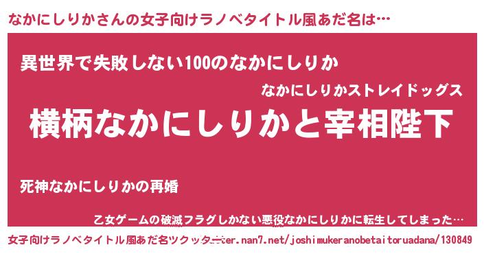 | 男性向けラノベタイトル風あだ名 | 『なかにしりかに滅ぼされるだけの簡単なお仕事です』 |