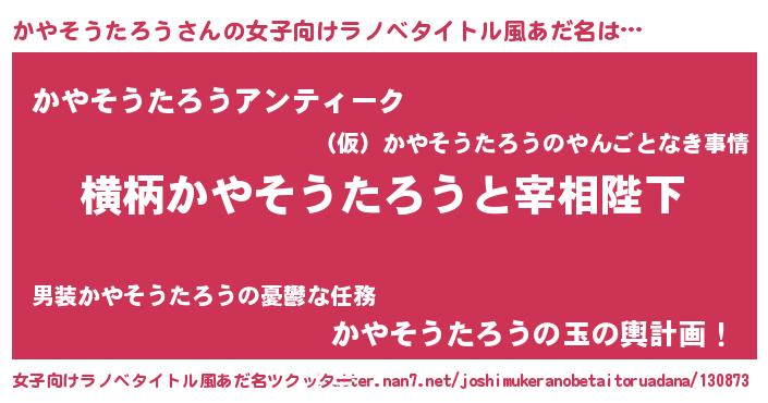 | 恥ずかしいあだ名 | 『カヤソウタロウデラックス』『かやちん』 |