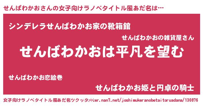 | 胡散臭い通販商品みたいなあだ名 | 『信頼と実績のサプリメント…その名も「せんばわかお」』 |