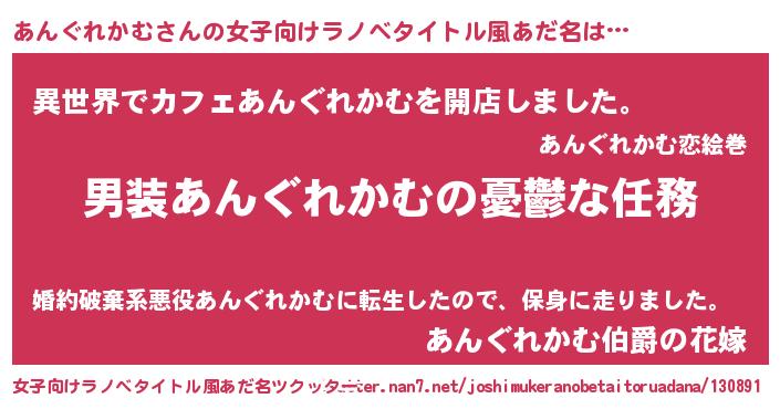 男性向けラノベタイトル風あだ名 | 『冴えないあんぐれかむの育てかた』 |