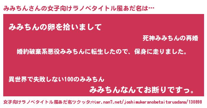| ヒーロー風カッコイイあだ名 | 『暗黒騎士ミミ』『超時空戦士ミミチン』 |