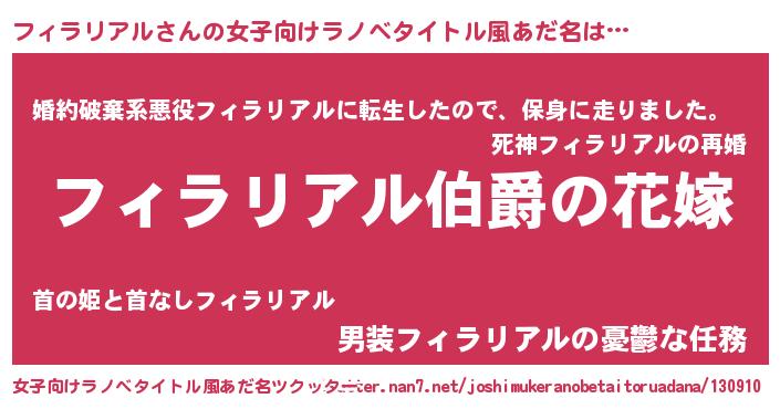 | ファンタジー風あだ名 | 『エターナルフィラリアルー』 |