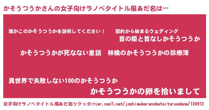 | 意味不明あだ名 | 『住所不定無職かそうつうか(2歳)』 |