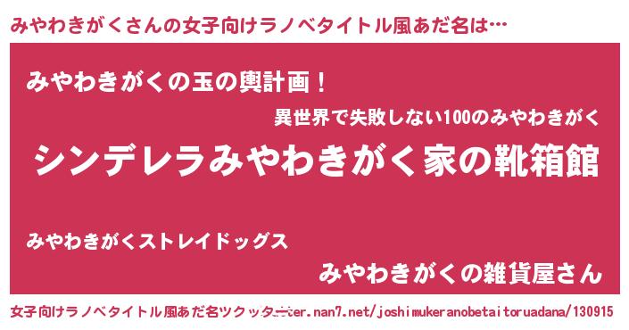 | 男性向けラノベタイトル風あだ名 | 『緋弾のミヤワキガク』 |