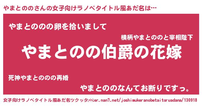 | 男性向けラノベタイトル風あだ名 | 『やはりやまとののの青春ラブコメはまちがっている 』 |
