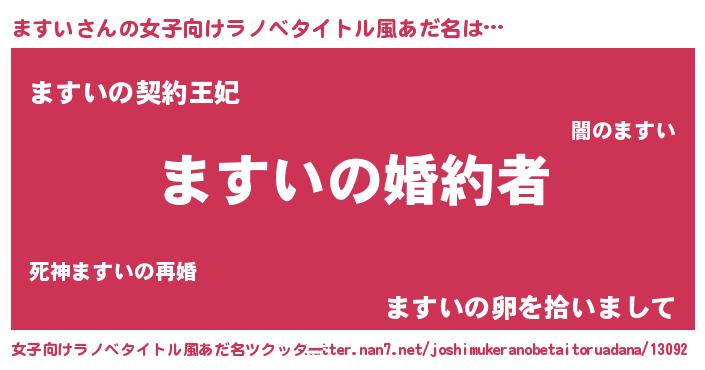 | 男性向けラノベタイトル風あだ名 | 『うちの娘の為ならば、俺はもしかしたらますいも倒せるかもしれない。』 |