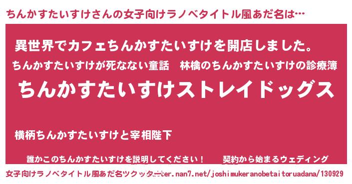 | 男性向けラノベタイトル風あだ名 | 『Re:ちんかすたいすけから始める異世界生活』 |