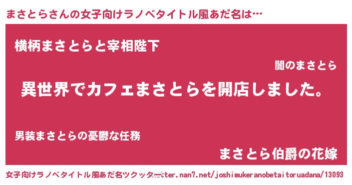 | 意味不明あだ名 | 『永久保存まさとら』『自称まさとら』 |