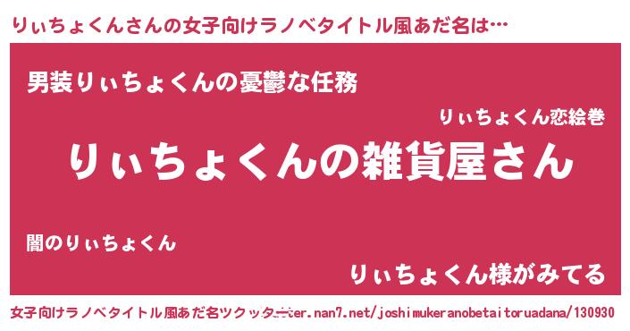 | 男性向けラノベタイトル風あだ名 | 『やはりりぃちょくんの青春ラブコメはまちがっている 』 |