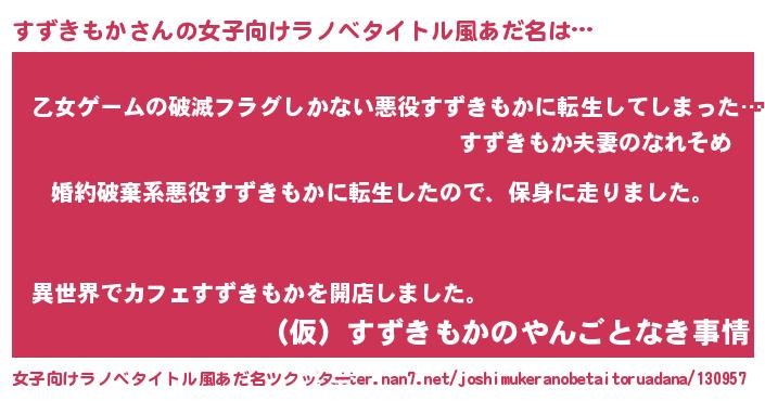 | ヘコむあだ名 | 『すずにー』『すずきもか(笑)』 |