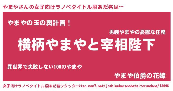 | 男性向けラノベタイトル風あだ名 | 『やまやに滅ぼされるだけの簡単なお仕事です』 |