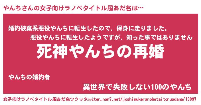 | ヒーロー風カッコイイあだ名 | 『慈愛の使者やんち』『ネオヤンチ』 |