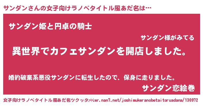 | 男性向けラノベタイトル風あだ名 | 『誰もが恐れるあのサンダンが、ぼくの専属メイドになるようです。』 |