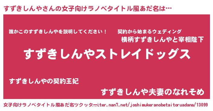 | 男性向けラノベタイトル風あだ名 | 『Re:すずきしんやから始める異世界生活』 |
