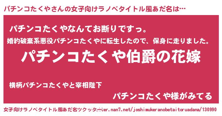 | 意味不明あだ名 | 『パチンコたくやフォーエバー』 |