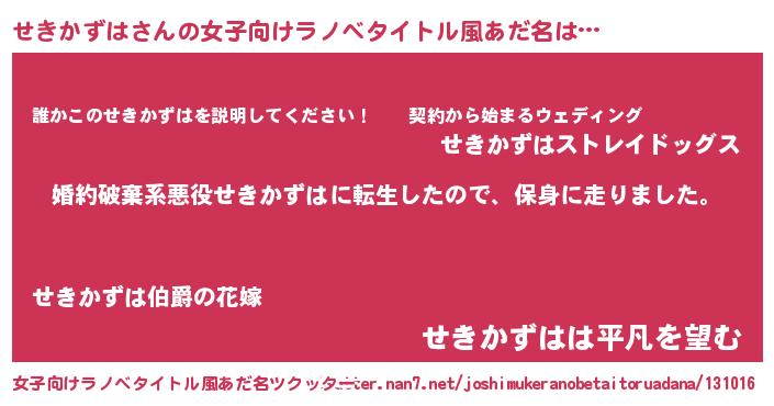 | 意味不明あだ名 | 『なめこ科せきかずは属』 |