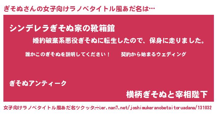 | 男性向けラノベタイトル風あだ名 | 『ギソヌアートオンライン』 |