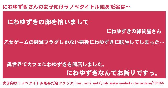 | 意味不明あだ名 | 『住所不定無職にわゆずき(65歳)』 |