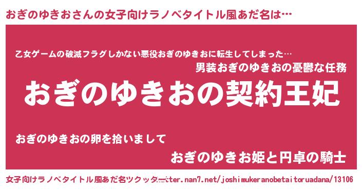 | 胡散臭い通販商品みたいなあだ名 | 『来世でも幸せになれる水素水…その名も「おぎのゆきお」』 |