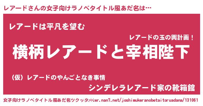 | 自動車の名前っぽいあだ名 | 『ランレアギーニ』『レルトアパン』 |