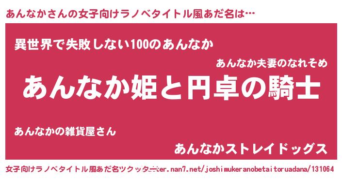 | ヘコむあだ名 | 『あんっふぃ~』『あんなか(笑)』 |