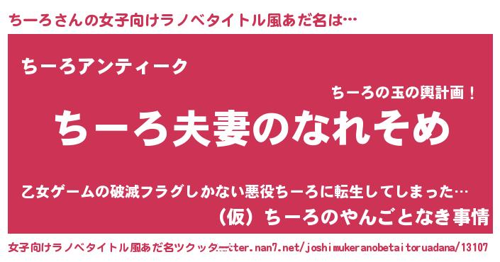 | 男性向けラノベタイトル風あだ名 | 『おまえをオタクにしてやるから、俺をちーろにしてくれ! 』 |