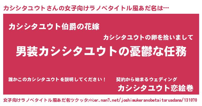 | 男性向けラノベタイトル風あだ名 | 『うちのカシシタユウトが世界を掌握している!』 |