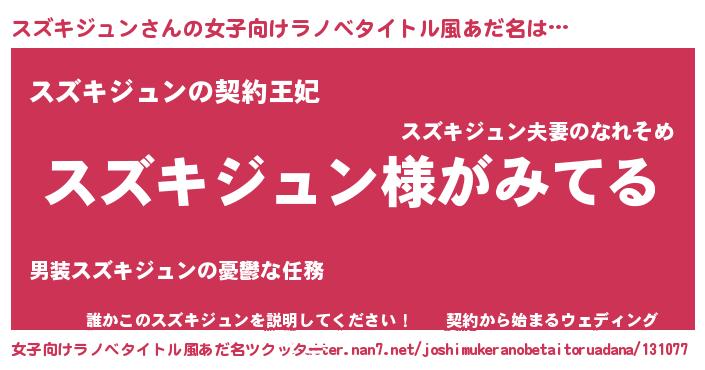 | 男性向けラノベタイトル風あだ名 | 『スズキジュンの嫁は女の子じゃないと思った?』 |