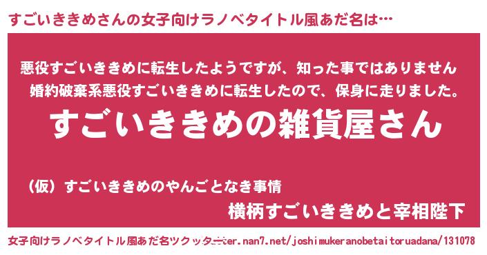 | 男性向けラノベタイトル風あだ名 | 『やはりすごいききめの青春ラブコメはまちがっている 』 |