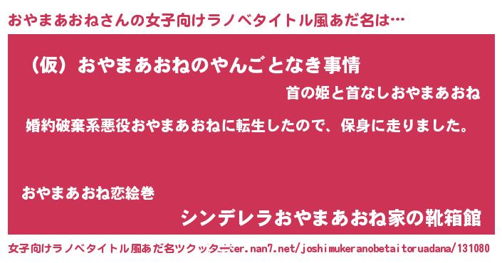 胡散臭い通販商品みたいなあだ名 | 『モテモテ間違いなし霊験あらたかなお札…その名も「おやまあおね」』 |