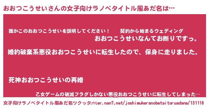 | 胡散臭い通販商品みたいなあだ名 | 『必ず成功するブレスレット…その名も「おおつこうせい」』 |