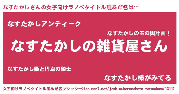 | ファンタジー風あだ名 | 『エターナルナスタカシー』『ゼナストゥ』 |
