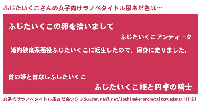 | 男性向けラノベタイトル風あだ名 | 『フジタイクコスレイヤー』 |