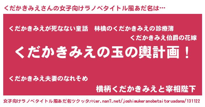 | 男性向けラノベタイトル風あだ名 | 『くだかきみえ~年齢イコール彼女いない歴の魔法使い~』 |