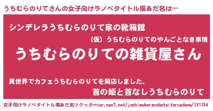 | 男性向けラノベタイトル風あだ名 | 『やはりうちむらのりての青春ラブコメはまちがっている 』 |