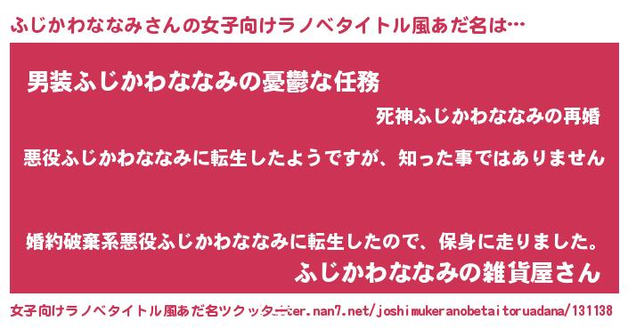 | 男性向けラノベタイトル風あだ名 | 『この素晴らしい世界にふじかわななみを!』 |