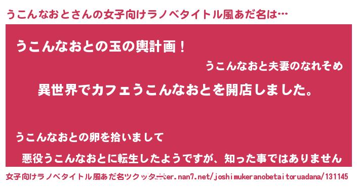 | 意味不明あだ名 | 『永久保存うこんなおと』 |