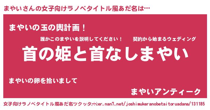 | 男性向けラノベタイトル風あだ名 | 『はたらくまやいさま!』 |
