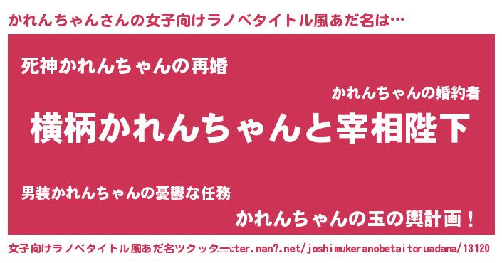 | 男性向けラノベタイトル風あだ名 | 『かれんちゃんに滅ぼされるだけの簡単なお仕事です』 |