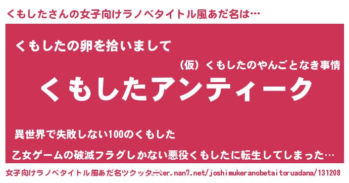 | 胡散臭い通販商品みたいなあだ名 | 『ガンによく効く高麗人参…その名も「くもした」』 |