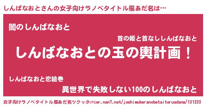 | ヘコむあだ名 | 『しんばなおと(苦笑)』『しんにー』 |