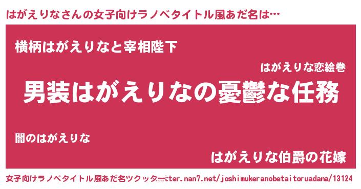 | 男性向けラノベタイトル風あだ名 | 『うちのはがえりなが世界を掌握している!』 |