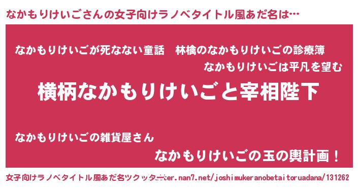 | 男性向けラノベタイトル風あだ名 | 『なかもりけいごに滅ぼされるだけの簡単なお仕事です』 |