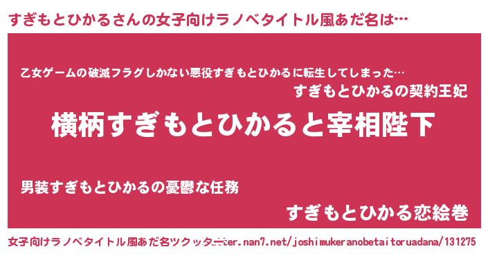| 男性向けラノベタイトル風あだ名 | 『すぎもとひかるに滅ぼされるだけの簡単なお仕事です』 |