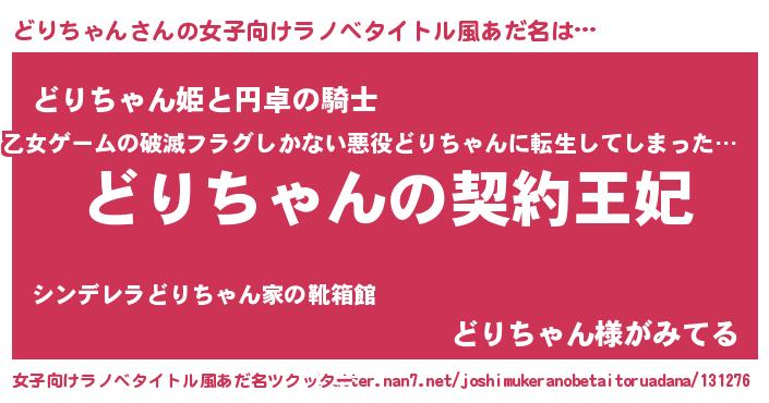 | 胡散臭い通販商品みたいなあだ名 | 『来世でも幸せになれる水素水…その名も「どりちゃん」』 |