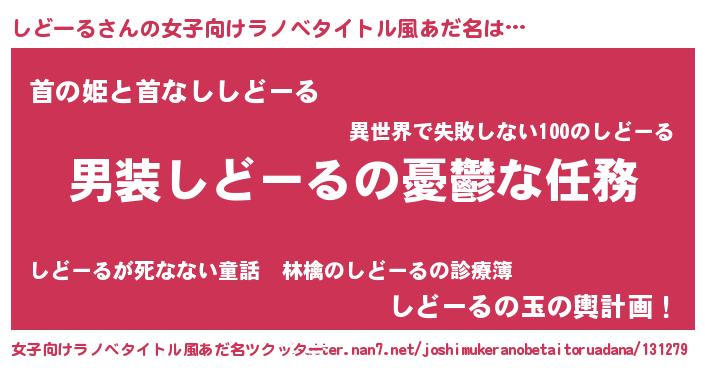 | 男性向けラノベタイトル風あだ名 | 『うちのしどーるが世界を掌握している!』 |